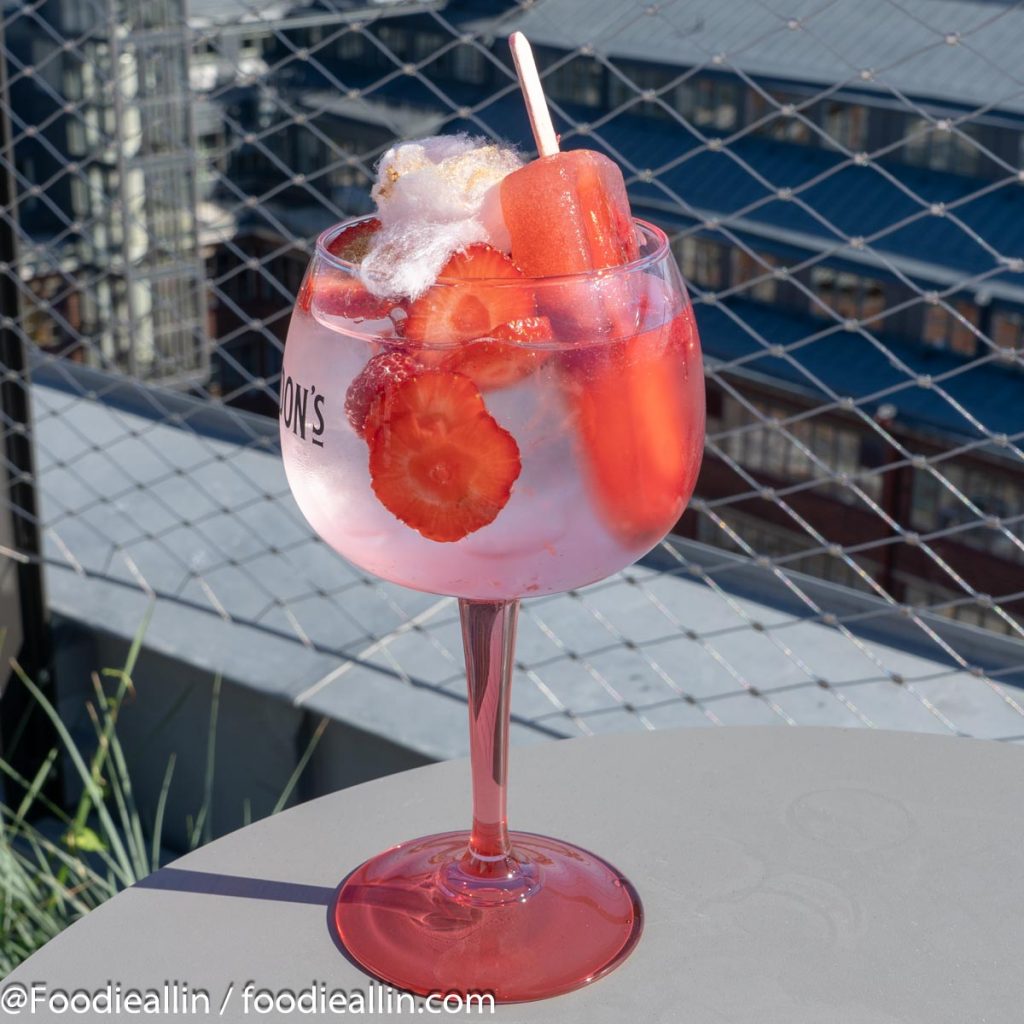 1: Fill a large wine glass with ice and add 4 cl Gordon´s Pink and 12 cl tonic (if you have a pink tonic use it)